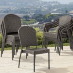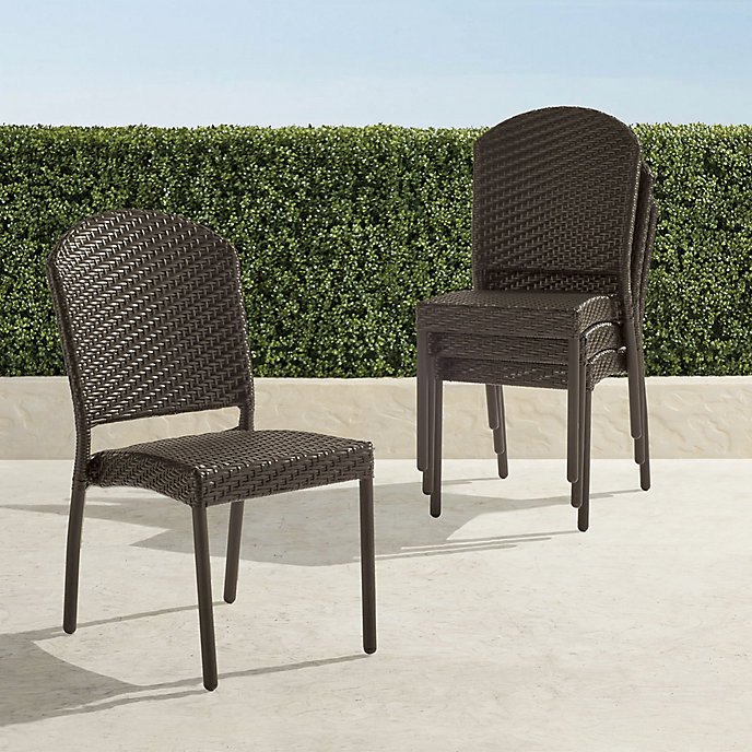 Our full-scale, lightweight Cafe Stacking Side Chairs create elegant outdoor seating at a moment’s notice. Advanced all-weather wicker is double woven over powdercoated aluminum frames to create the rich look of wicker without the worries.