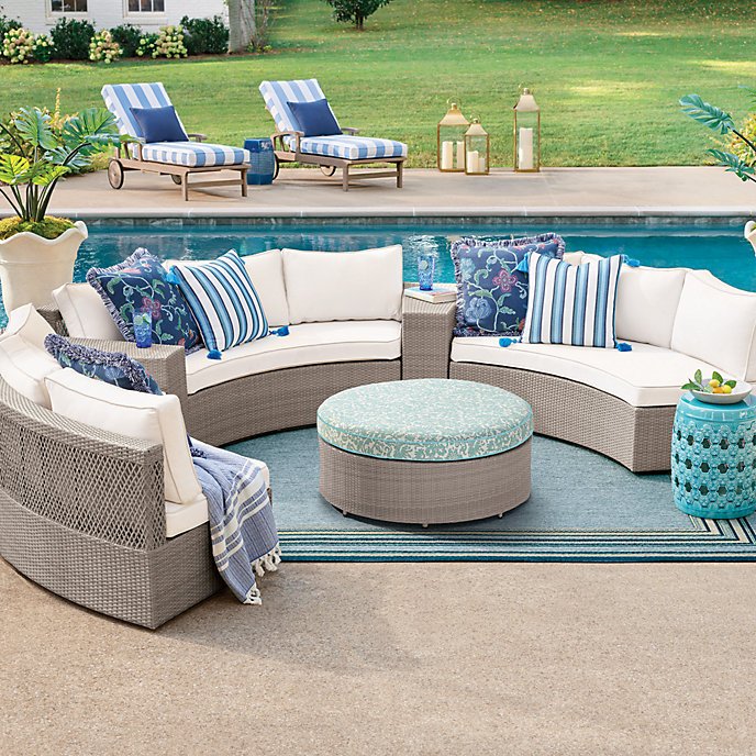 Often imitated, our exceptional Pasadena II Modular Collection creates an inviting open-air chat room that can easily be arranged (and rearranged) to accommodate your unique outdoor space. Strands of all-weather, high-density polyethylene wicker are handwoven over a powdercoated aluminum frame to create outdoor seating that will look great for years to come and resist rust — even in harsher climates. Included cushions are upholstered in 100% solution-dyed acrylic fabric and have mesh bottoms for quick-drying convenience.